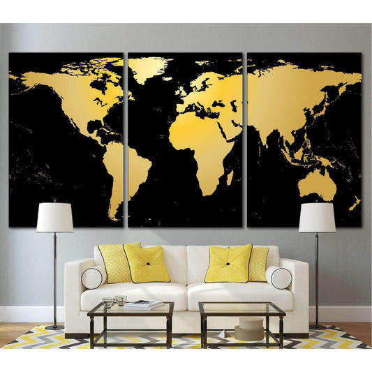 Black / Gold World Map №860 Ready to Hang Canvas Print