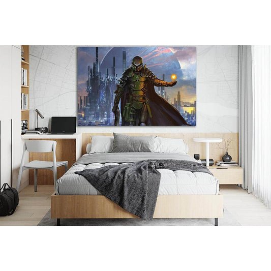 Explore fantasy and sci-fi wall art featuring robots, astronauts, spaceships, futuristic vehicles, warriors, and imaginative otherworldly scenes. This collection brings together bold canvas prints for living rooms, bedrooms, offices, gaming spaces, and modern interiors.