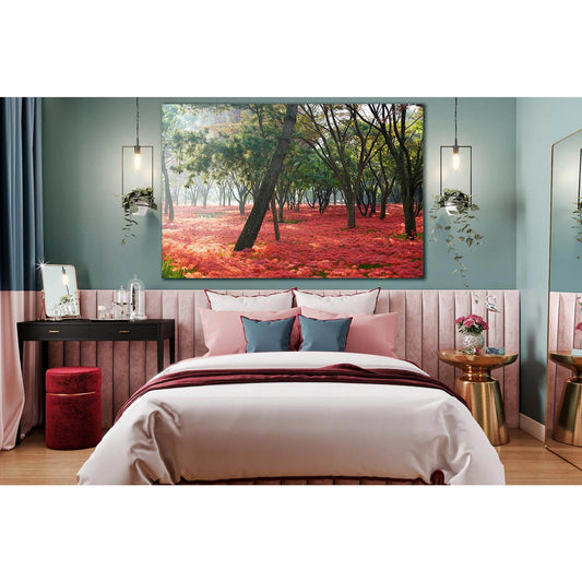 Trees Among Flowers In Park №SL724 Ready to Hang Canvas Print