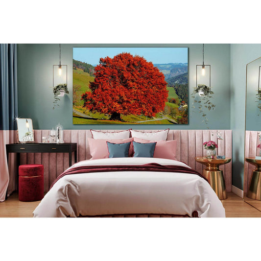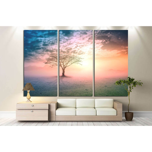 Alone tree on beautiful meadow №3161 Ready to Hang Canvas Print