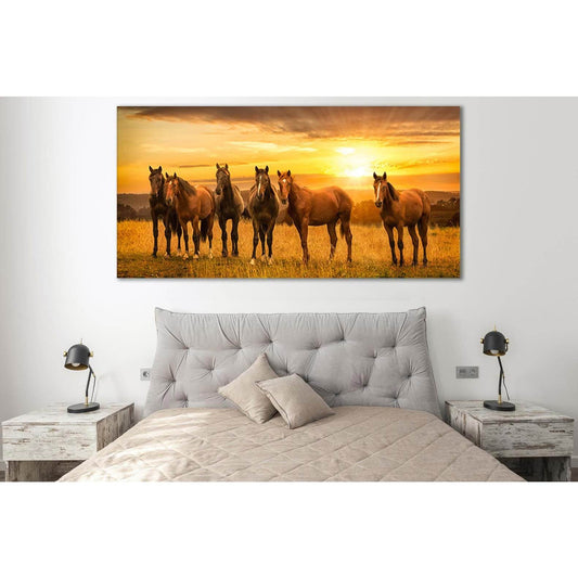 Horses In The Field Sunrise №SL279 Ready to Hang Canvas Print
