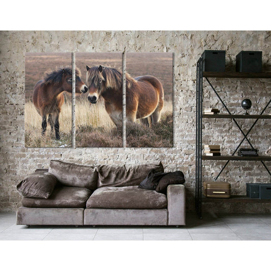 Pony And Horse On Moorland In Exmoor №04231 Ready to Hang Canvas Print
