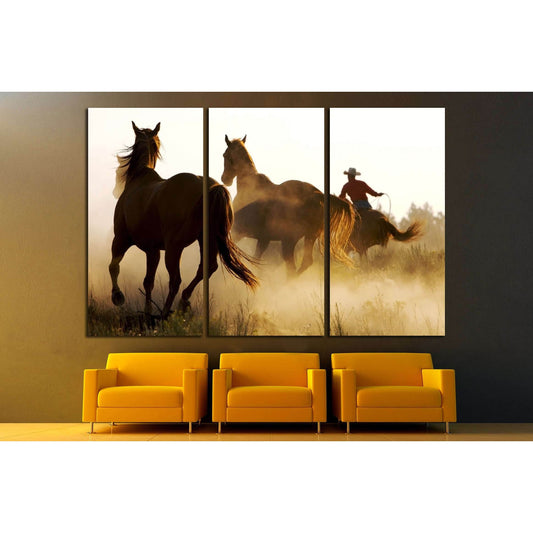 Horses Running Gallop In The Desert №SL1559 Ready to Hang Canvas Print