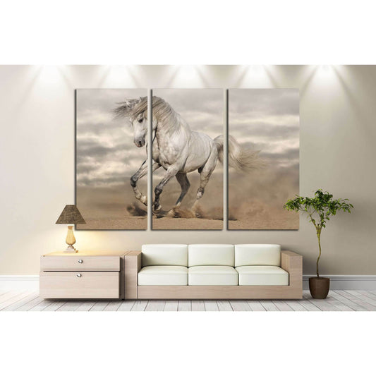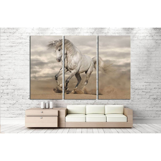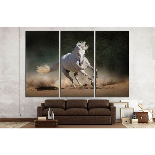 White andalusian horse in desert dust against dark background №1855 Ready to Hang Canvas Print