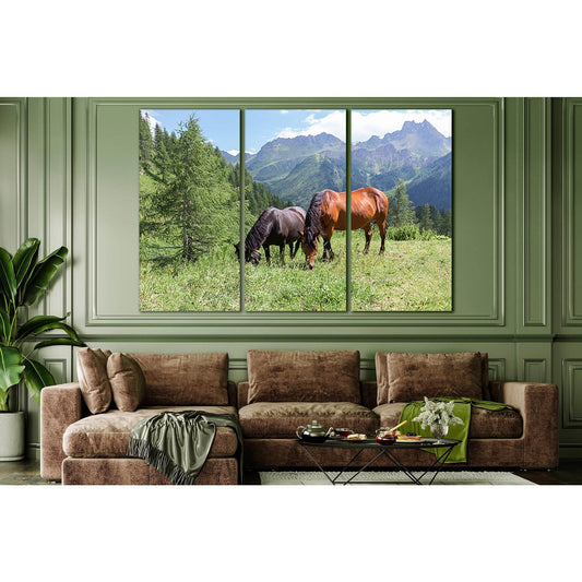 Two Horses Grazing In The Mountains №SL1025 Ready to Hang Canvas Print