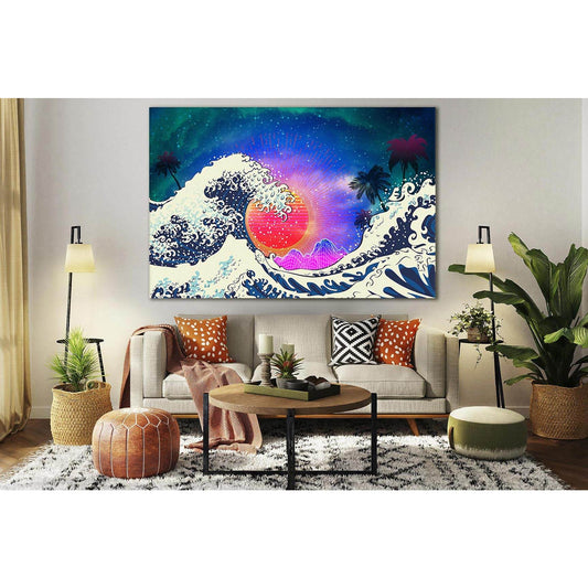 Ocean Waves And Palm Trees Pop Art №SL555 Ready to Hang Canvas Print