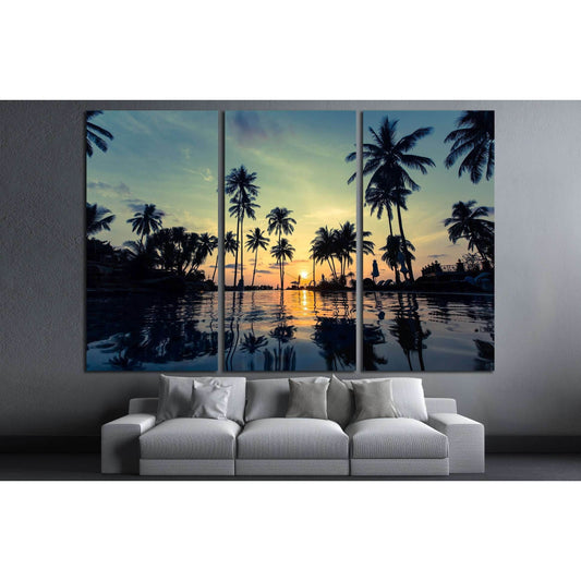 Beautiful sunset on a tropical beach with palm trees reflection in the water №3106 Ready to Hang Canvas Print