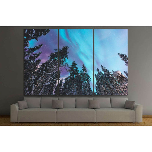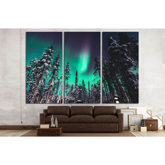 Multicolored green vibrant Aurora Borealis, Aurora Polaris, Norway, Scandinavia №1911 Ready to Hang Canvas Print