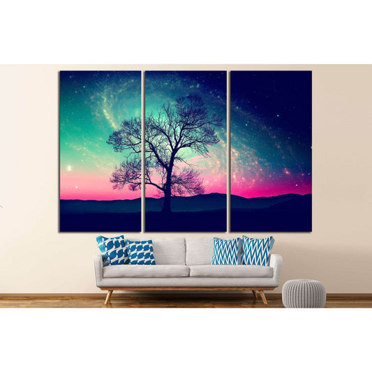 Red alien landscape with alone tree over the night sky with many stars №1307 Ready to Hang Canvas Print