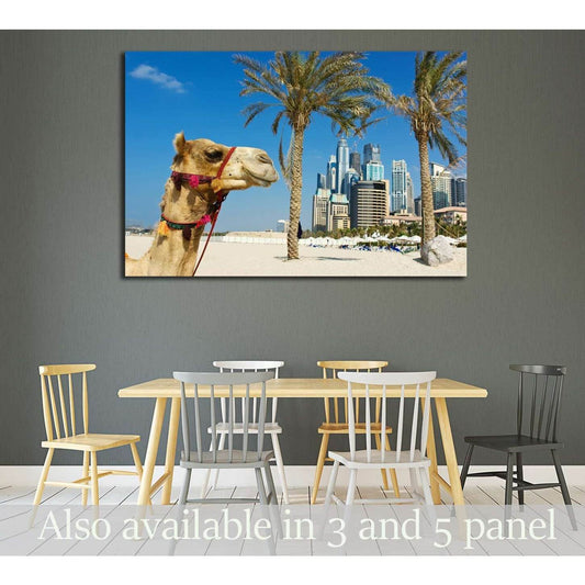 Camel at the urban background of Dubai №1135 Ready to Hang Canvas Print