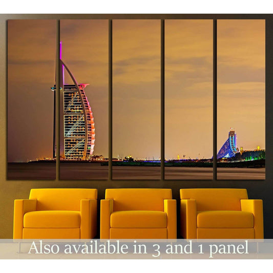 Burj Al Arab hotel on Jumeirah beach in Dubai, modern architecture, luxury beach resort, summer vacation and tourism concept №2268 Ready to Hang Canvas Print