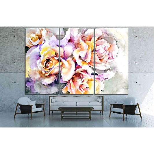 Beautiful flowers - Delicate yellow and pink roses on gray and blue background №2561 Ready to Hang Canvas Print