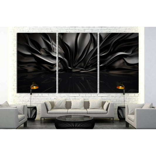 Beautiful stylish black background with developing, flying cloth in a room with a reflection on the floor №2886 Ready to Hang Canvas Print