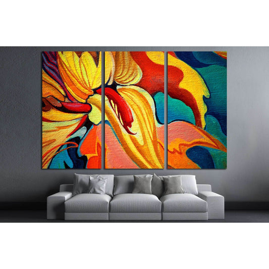 Oil painting close-up fragment, abstract colorful flowers №1355 Ready to Hang Canvas Print