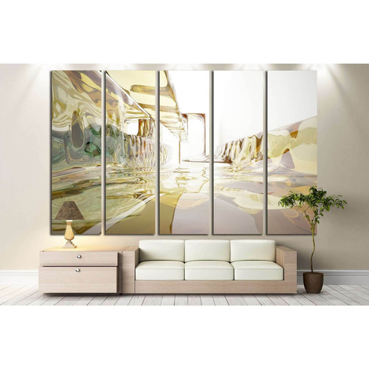 brawn, yellow and blue glass smoth wave objects №1609 Ready to Hang Canvas Print