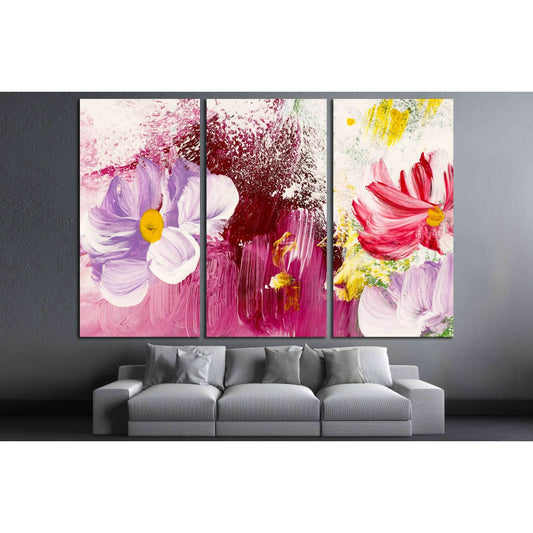 Abstract flowers, close-up fragment of acrylic painting on canvas №3018 Ready to Hang Canvas Print