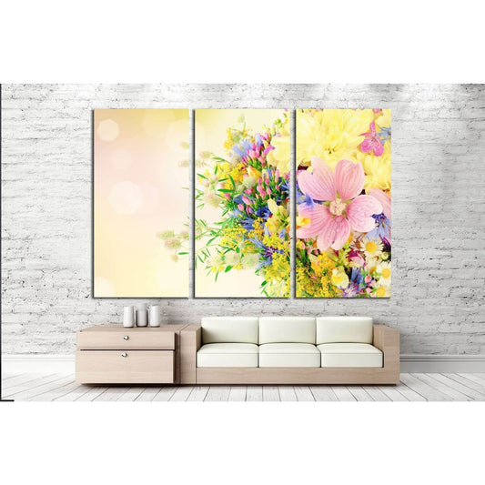 Bouquet of summer flowers with bokeh №1340 Ready to Hang Canvas Print