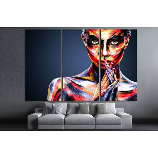 Portrait of the bright beautiful girl with art colorful make-up and bodyart №2762 Ready to Hang Canvas Print