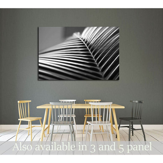 Black and white close up view of beautiful green palm leaf on natural background №2833 Ready to Hang Canvas Print