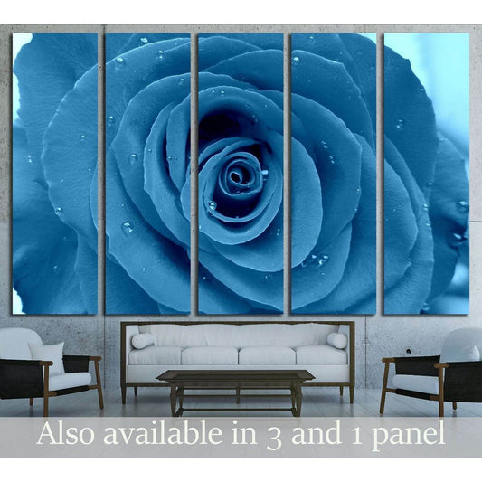 Blue rose in rain - Flower of red rose under a deform glass №2570 Ready to Hang Canvas Print