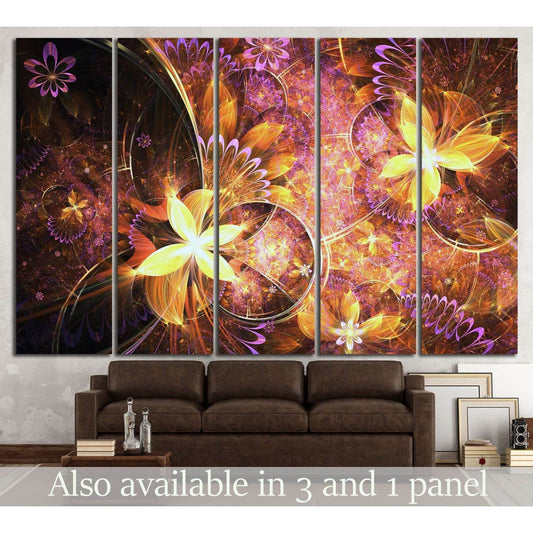 Golden fractal flowers №1425 Ready to Hang Canvas Print