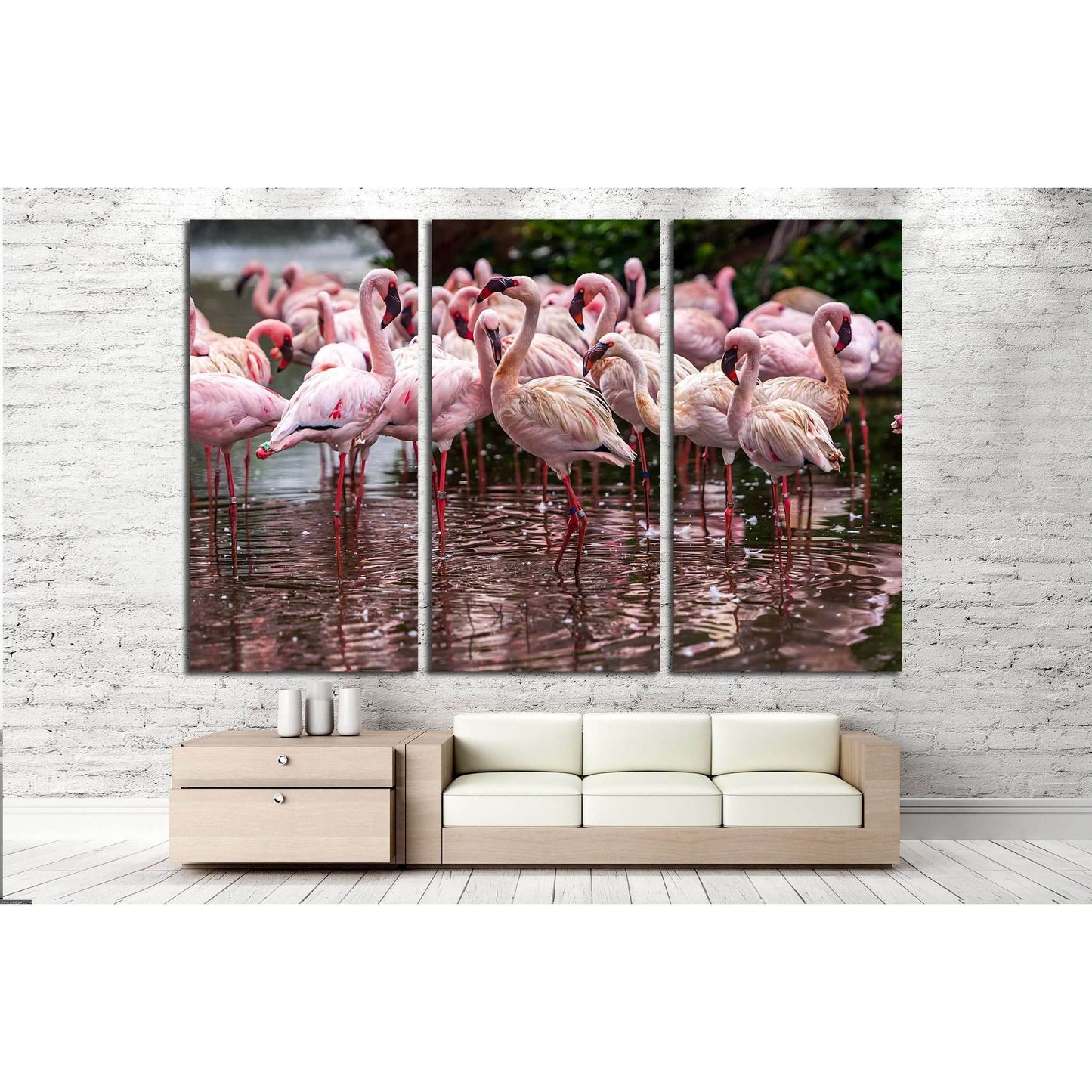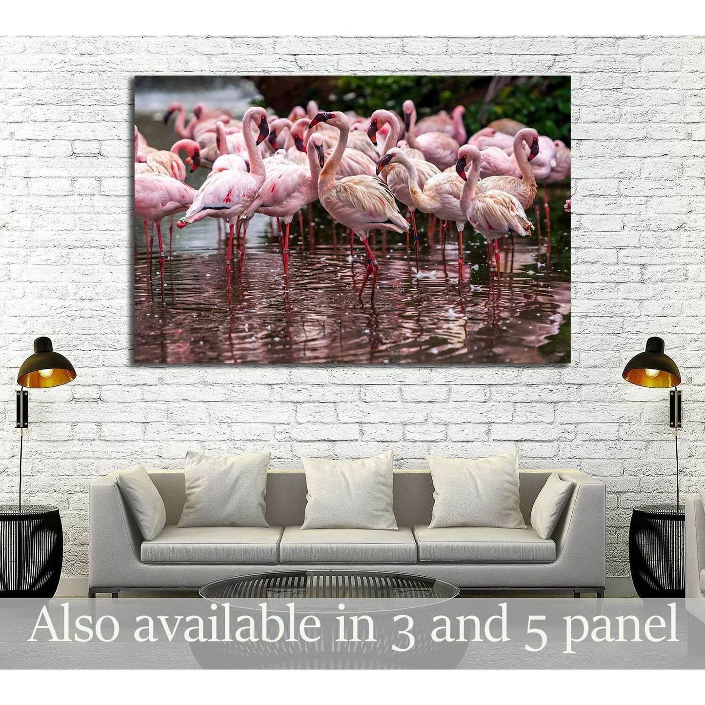 A flock of pink flamingos and reflection in the water №2795 Ready to Hang Canvas Print