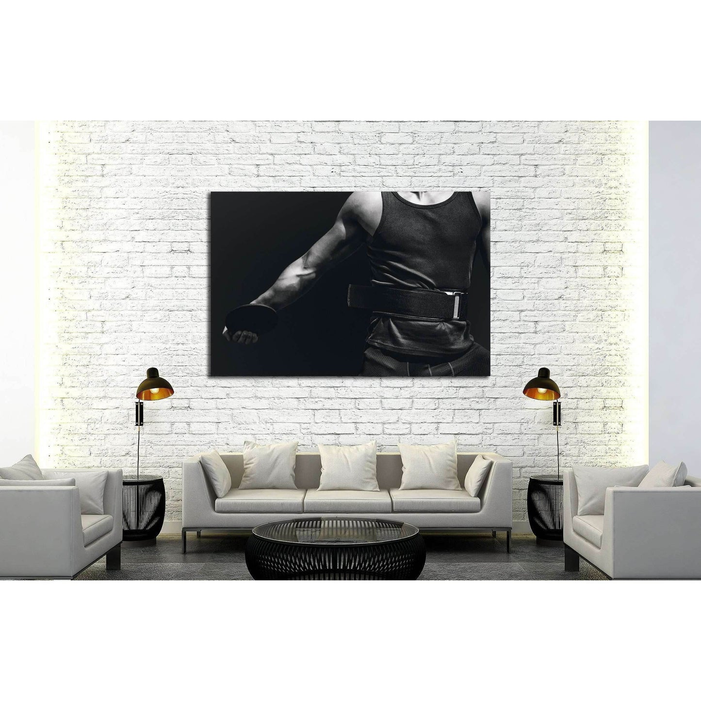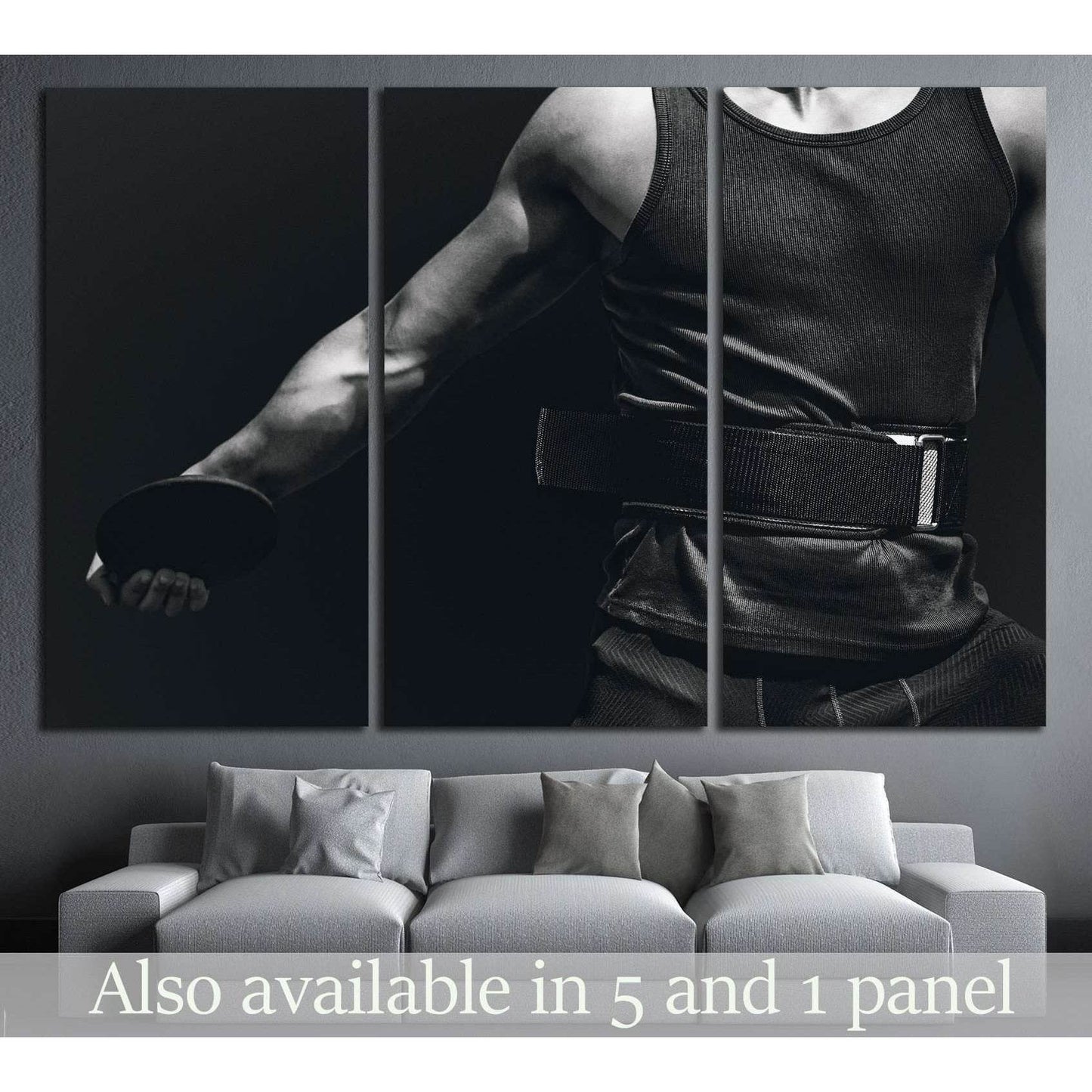 Close up on sportsman chest practising discus throw against black background №2133 Ready to Hang Canvas Print