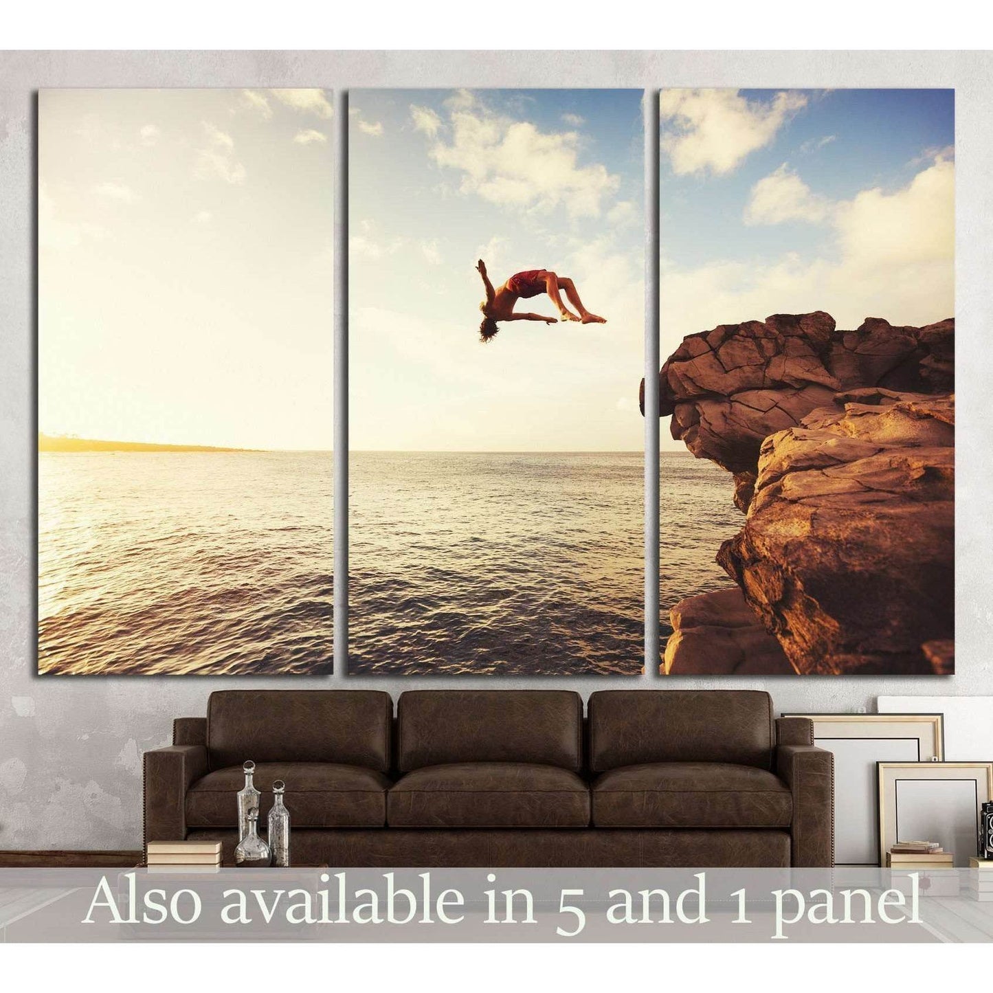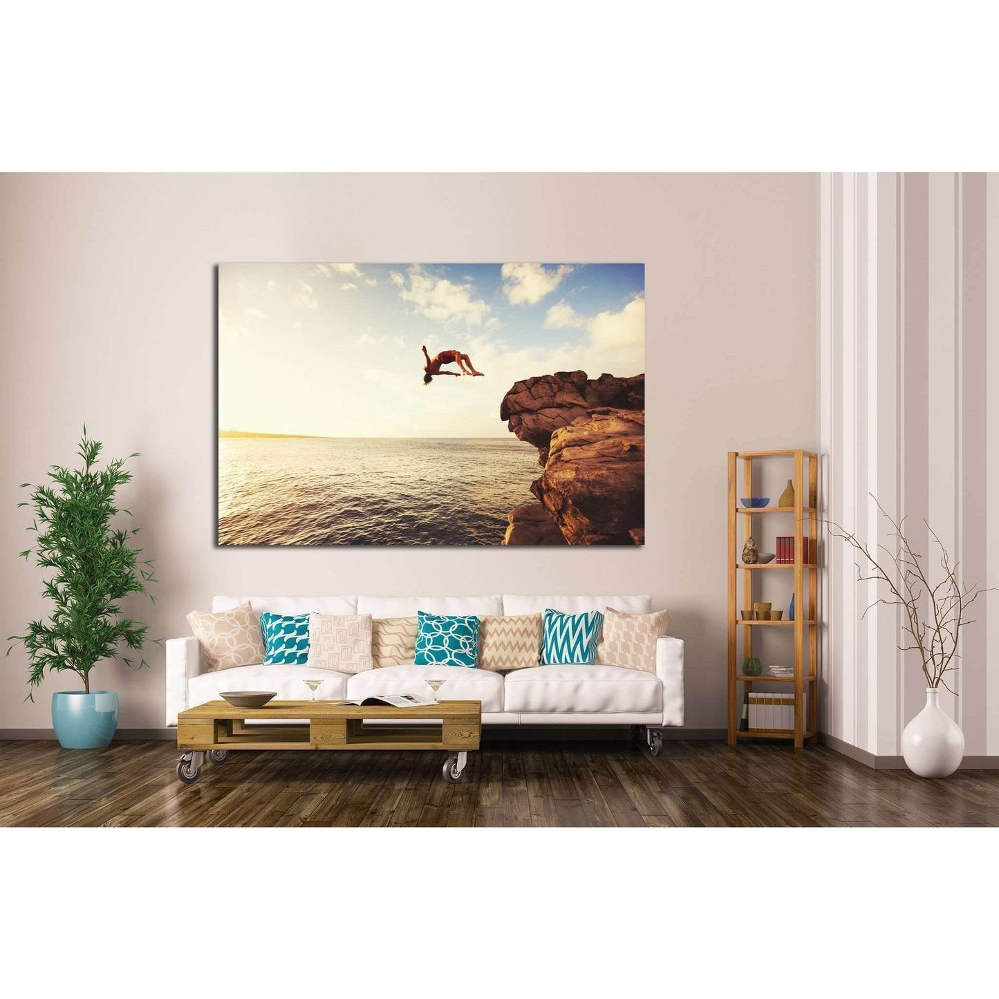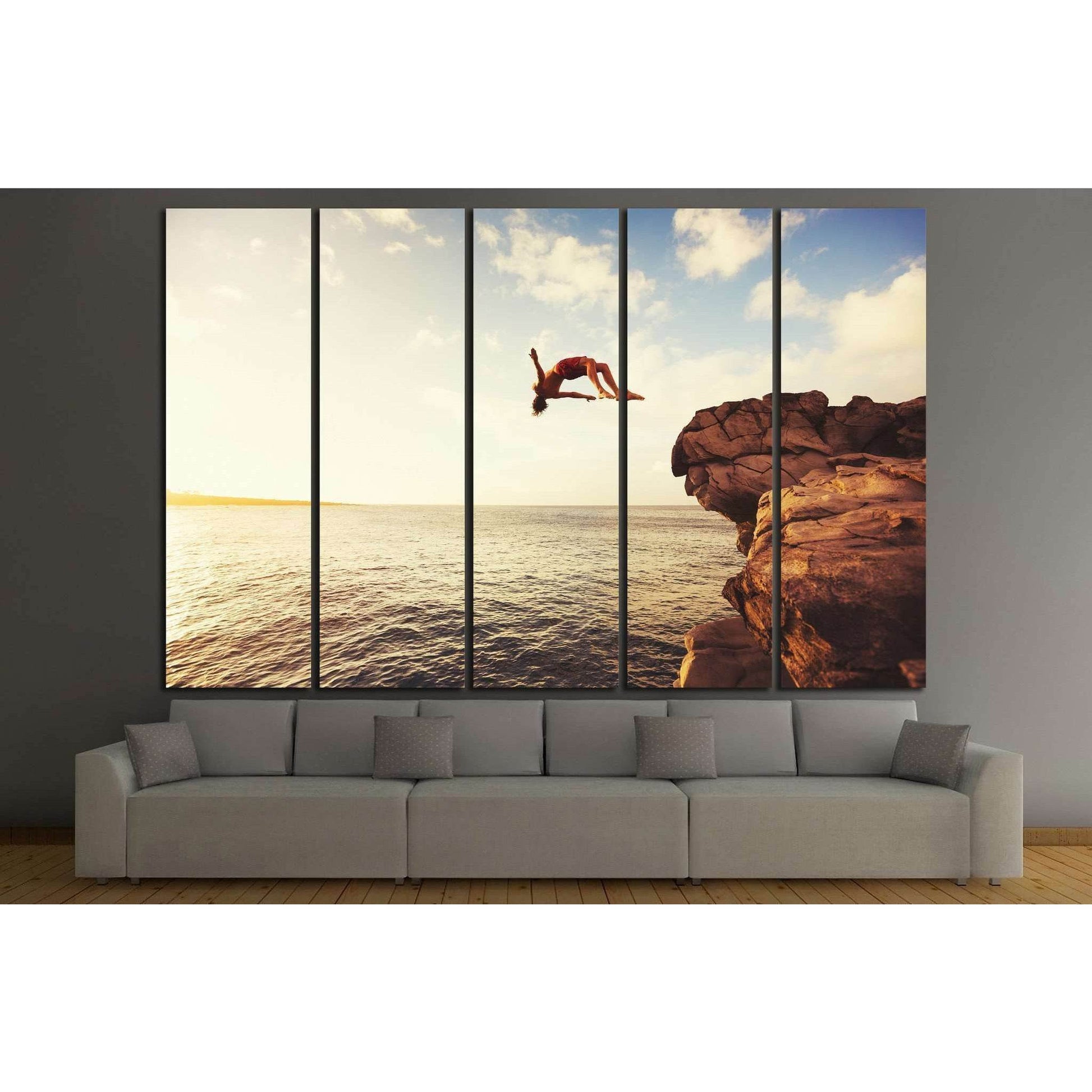 Cliff Jumping into the Ocean at Sunset, Summer Fun Lifestyle №1380 Ready to Hang Canvas Print