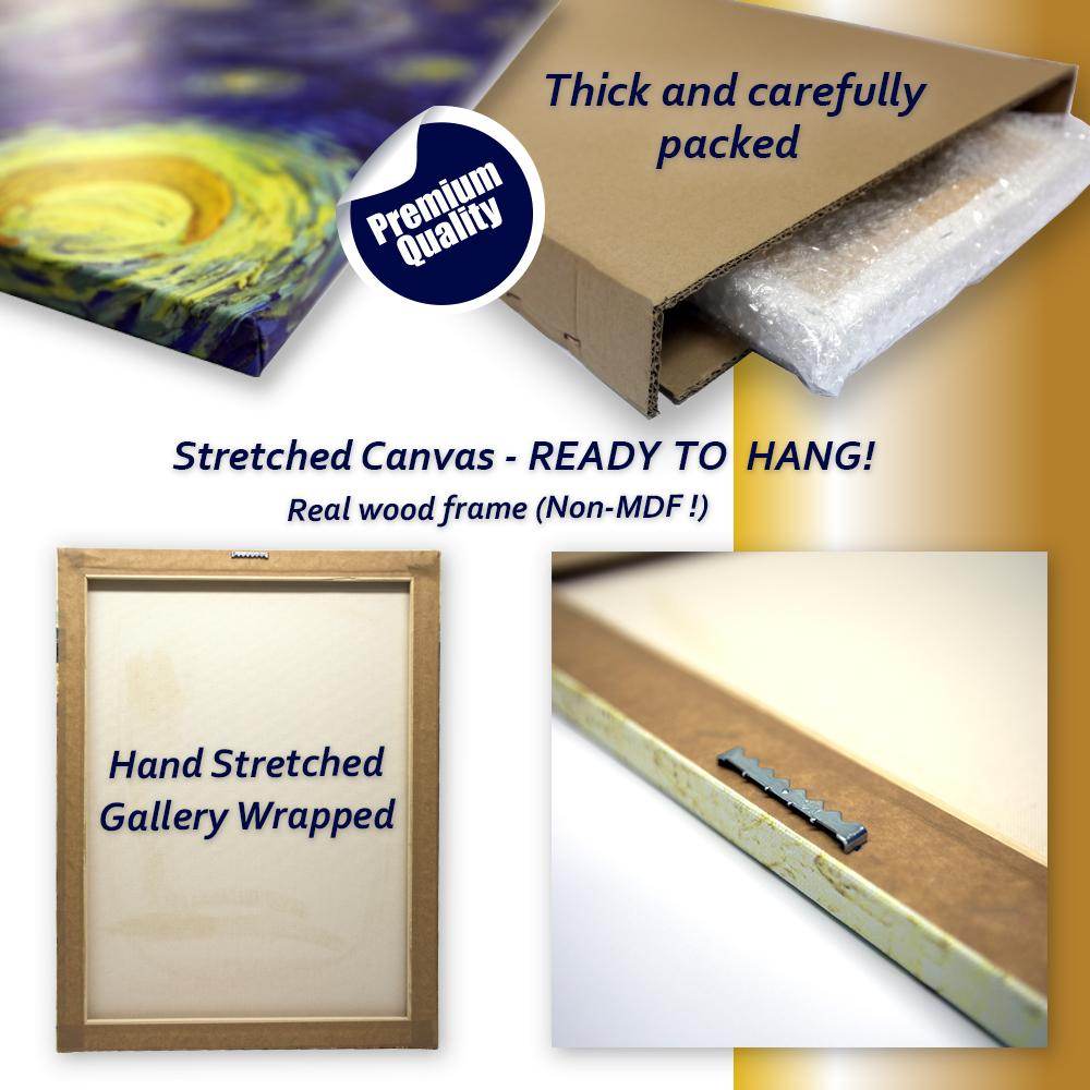No extra effort needed—your canvas comes professionally stretched on a wooden framework and and comes with hanging accessories already installed. Just unbox, hang it up, and enjoy instant gallery-level decor.