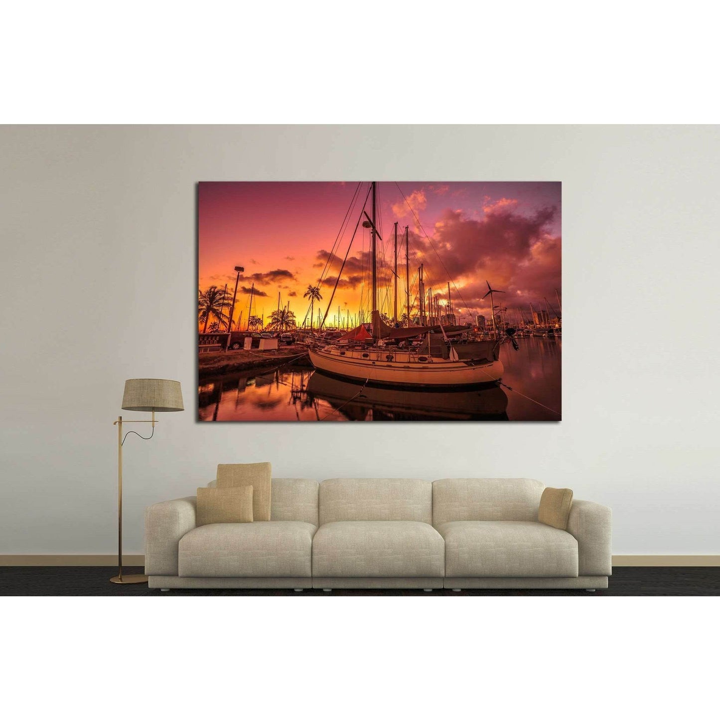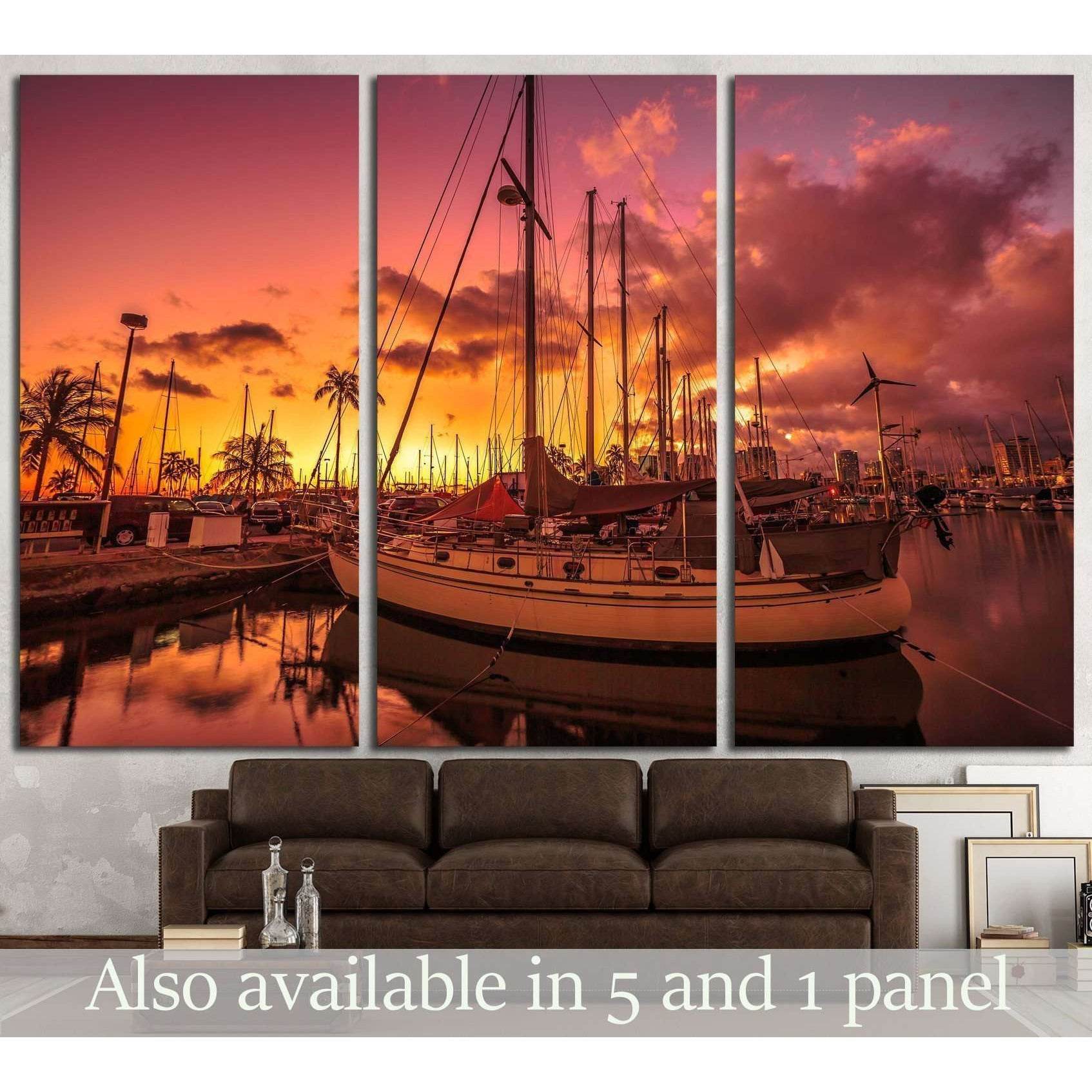 sailing boats docked at the Ala Wai Harbor, Oahu, Hawaii №1907 Ready to Hang Canvas Print
