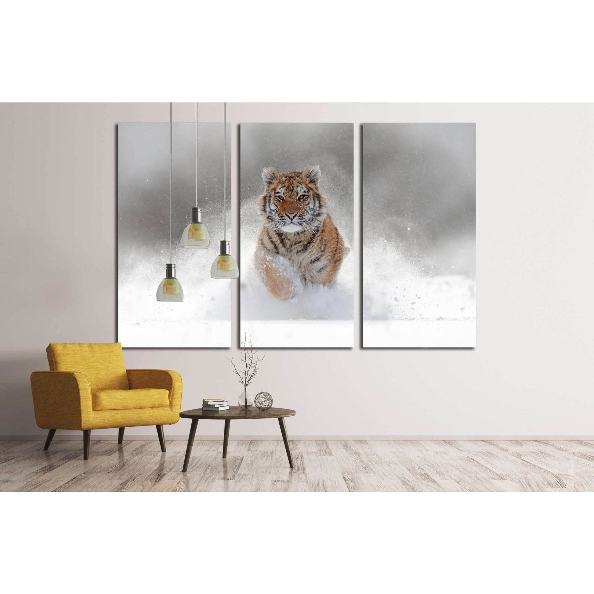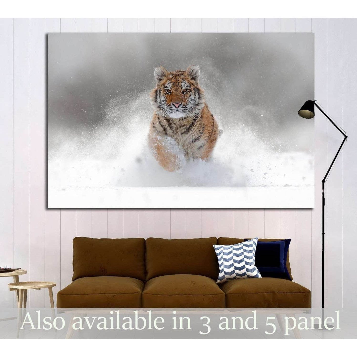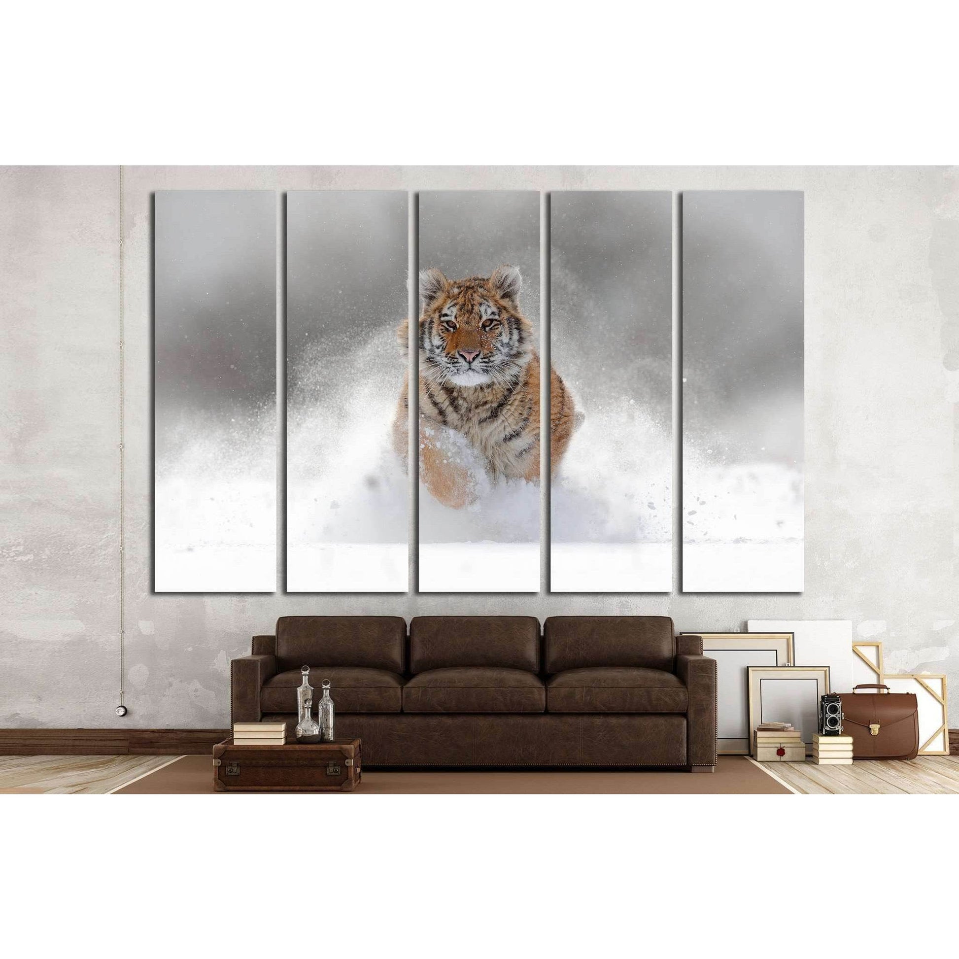 Tiger in wild winter nature. Amur tiger running in the snow №1831 Ready to Hang Canvas Print